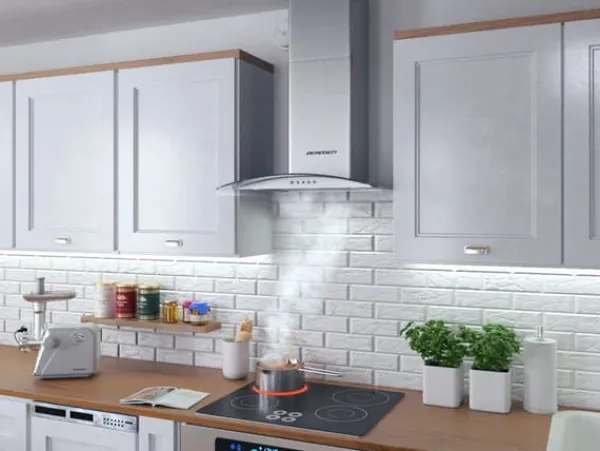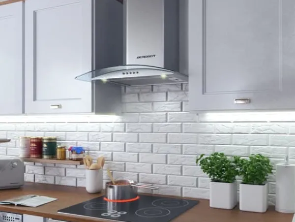 Skorstensfläkt BerdsenBT-202 är en högkvalitativ apparat tillverkad av härdat glas och rostfritt stål.