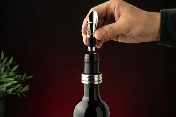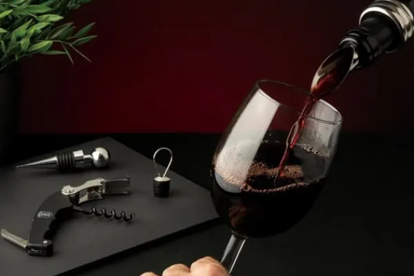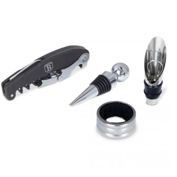 Ett elegant vinset förpackat i en estetisk presentförpackning. Produktegenskaper: En uppsättning av alla de mest använda vintillbehören – användbara i varje hem. Tillverkad av förkromad metallegering och högkvalitativt gummi som används i proppen. Den otvivelaktiga fördelen med setet är dess estetiska design – de är praktiska, bekväma och eleganta, kan tillfredsställa de mest raffinerade smakerna. Setet kommer att vara användbart i alla hem – en perfekt present till alla vinälskare. Setet innehåller: – korkskruv med kniv för att ta bort plastkorkskyddet – stålkork – anti-dropp flaskring – hällare Setet är förpackat i en estetisk låda, perfekt som present.
