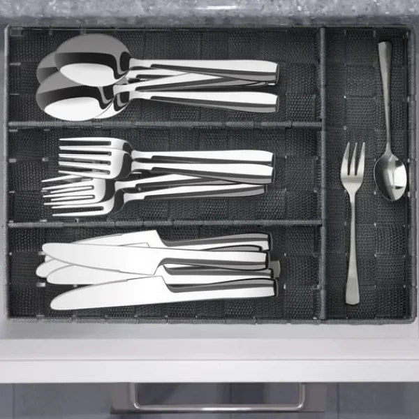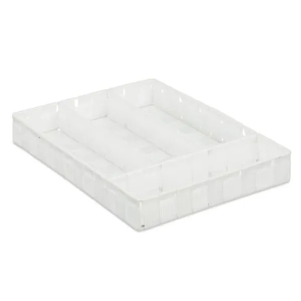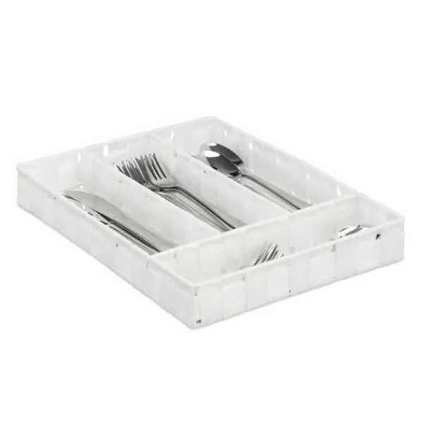 Håll dina kökslådor organiserade med denna mångsidiga besticklåda med fyra fack, perfekt för förvaring av bestick, köksredskap eller till och med pysselmaterial. Dess smala, stilrena rottingliknande design passar de flesta lådstorlekar och ger ett prydligt, elegant intryck till alla utrymmen. Njut av en rörigfri organisering och enkel åtkomst till dina nödvändigheter.