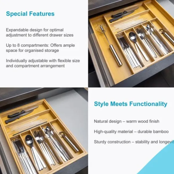 Skapa ordning och sortera enkelt dina bestick i vår bestickbricka tillverkad av naturlig bambu. Det blir slut på irriterande kaos i lådan.