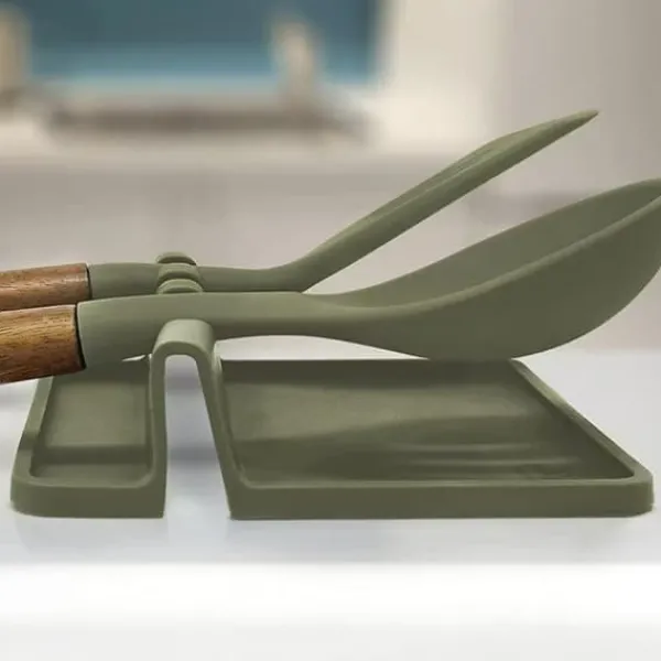Multifunktionell bestickhållare: Denna silikonskedhållare har flera fack för att hålla en mängd olika köksredskap, såsom skedar, spatlar och slevar.