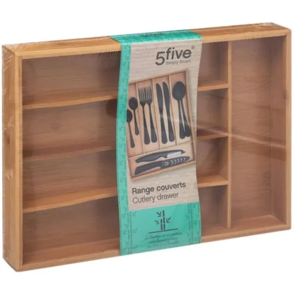 Den här fina besticklådan ger garanterat en hemtrevlig känsla till köket. Den har 5 rymliga fack och är gjord av bambu. Besticklådan har en stilren utformning, samtidigt som den är både hållbar och funktionell.