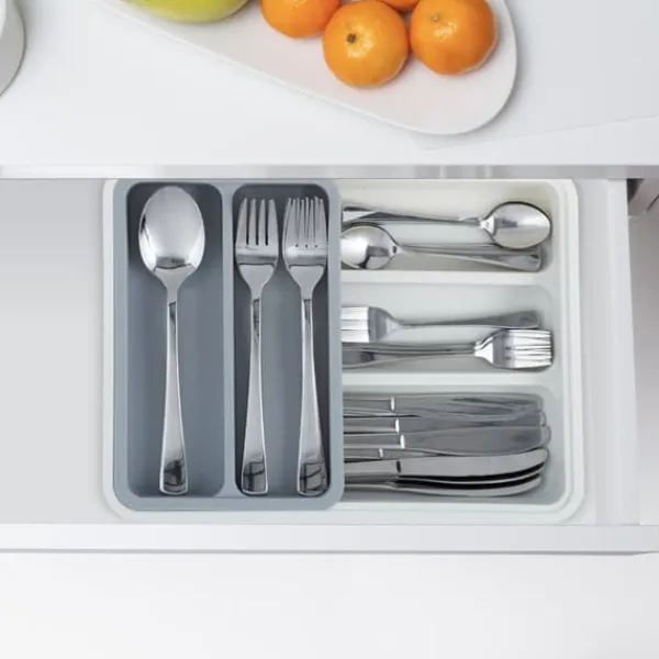 Håll dina bestick och köksredskap organiserade med denna praktiska utdragbara besticklåda, designad för att passa de flesta lådstorlekar tack vare sin justerbara bredd. Med flera fack erbjuder den en prydlig och ordnad förvaringslösning och är enkel att rengöra och underhålla. Den robusta plastkonstruktionen säkerställer långvarig användning i alla kök.