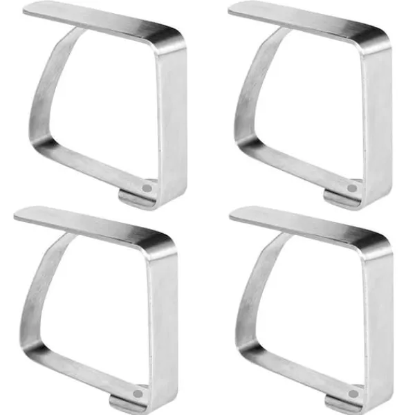 Set med fyra bordsklämmor i stål. De hjälper till att hålla ditt bord organiserat och estetiskt tilltalande. De kommer att vara användbara i alla hem, trädgårdar, terrasser eller balkonger. Oumbärliga vid blåsigt väder under utomhusfester eller picknickar. Klämmorna förhindrar att materialet förskjuts och skrynklar sig. Originalprodukt från det tjeckiska märket Orion. Tillverkad i enlighet med europeiska standarder.