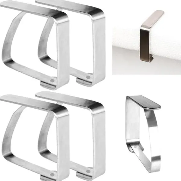 ✅ ANVÄNDBAR – De är perfekta för tyg- och engångsdukar. De förhindrar att duken eller vaxduken glider av bordet, och glas, tallrikar och skålar som placeras på den förblir säkra och stabila. Särskilt användbara vid blåsigt väder på terrassen eller i trädgården.