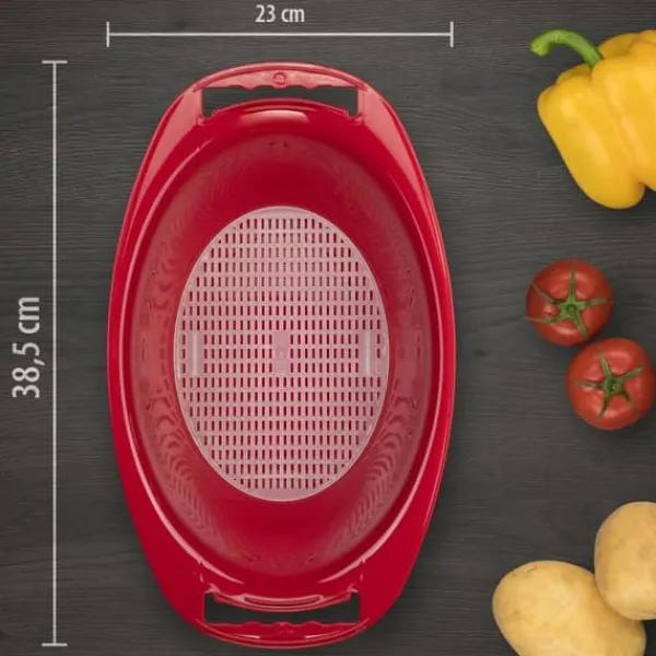 Perfekt passande, säker placering av Boerner V5. Denna välformade, ursprungliga Boerner droppbricka är speciellt designad för V5® PowerLine V-slicer och garanterar en perfekt, säker passform av V-slicer. Urklippet fångas i skålen och sallader kan serveras direkt i den. Tilläggssilen fungerar som avtappningshjälp för nytvättade salladsblad, frukt etc. Produktdata: droppbricka som original Boerner-tillbehör funktionell passform för V-Slicer V5 PowerLine med silinsatsolja och vinägerbeständig enkel att använda och rengöra fri från mjukgörare och BPA i färgerna: Röd, Orange, Grön, Violett och Vit Kvalitet tillverkad i Tyskland: Boerner har producerat högkvalitativa köksredskap, skalknivar och skärmaskiner vid sitt huvudkontor i Eifel i över 60 år. Dessa imponerar med sin kvalitet och livslängd. Så lita på experterna. Perfekt passform: Denna eleganta droppbricka är speciellt utvecklad för alla PowerLine-skärare och rivjärn. Detta garanterar en säker passform. Sticklingen fångas upp i skålen och lämpar sig för direkt vidarebearbetning. Direktberedning: Skålen levereras med en användbar sil som fungerar som avtappningshjälp. Så du kan tvätta frukt och sallader i skålen och det kan droppa av där. Sallader kan också tillagas i skålen. Lätt att använda och rengöra: de praktiska öppningarna på handtagen gör att du kan fästa olika rivjärn och V5-skäraren i skålen. Skölj dem helt enkelt med vatten efter användning och de är redo att användas igen.