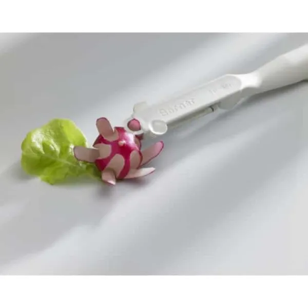 Med den ursprungliga Boerner kombiskalaren kan du skala och garnera potatis, morötter, gurka, auberginer, zucchini, etc. Klipp ut äpplen och garnera frukt och grönsaker imponerande till din buffé. Rengör helt enkelt under rinnande vatten efter användning. Produktdata: robust skalare med blad i rostfritt stål, funktionell form, lätt att använda och rengöra