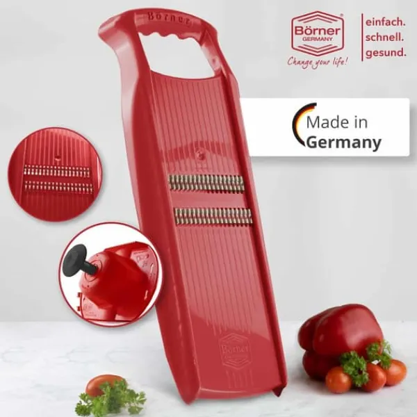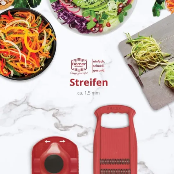 Borner Original Roko Powerline - grönsaks- och fruktskärare för fina remsor Julienne remsor set med frukthållare