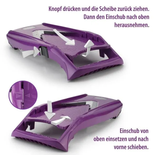 - Leverans omfattning: Bassetet innehåller en justerbar grönsaksskärare, en säkerhetsinsats och en säkerhetsfrukthållare, som även fungerar som lökhållare. Dina fingrar är alltid skyddade från bladen i rostfritt stål.