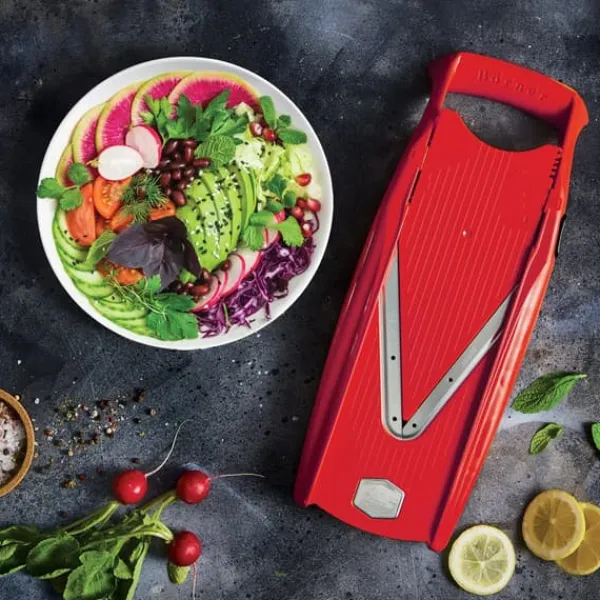 - Mångsidigt: Bassetet är idealiskt för potatisgratäng, gurksallad eller tomatmozzarella. Råsallader tillagas på nolltid. Skivaren är perfekt som potatisskärare för jämna remsor.