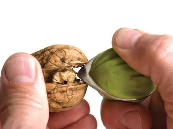 Genom att utnyttja nötskalets enda svaga punkt på detta sätt slipper du krossade nötter och bitar av skal överallt.