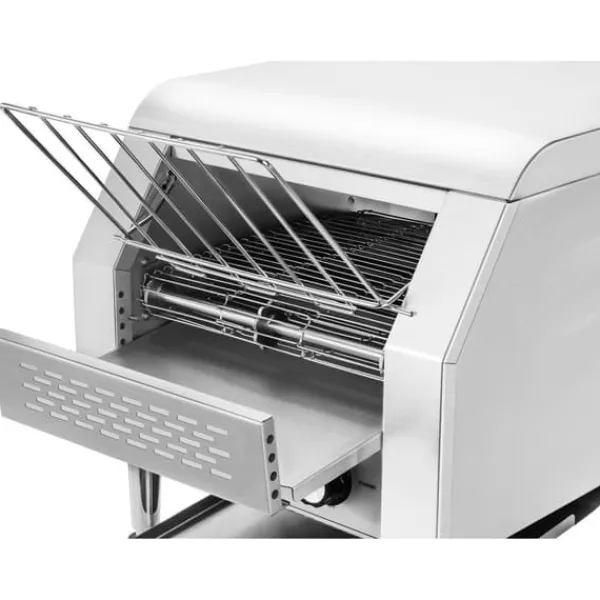 Brödrost med rullande band RCKT-1940 från Royal Catering passar perfekt för brunch eller självbetjäning i restauranger, kaféer, hotell, vandrarhem eller bagerier. Brödrosten RCKT 1940 med rullband har sju olika hastighetsgrader, så att brödskivorna kan rostas för att passa olika behov. Grad 1 är idealisk för lättare bröd, då hastigheten är ganska snabbt. Med denna rostningsgrad kan upp till 720 skivor bröd rostas per timme. Ju högre grad, desto mer intensiv är rostningen. Med grad 3, får du upp till 420 rostbröd med en medelrostning per timme och grad 7 förbereder upp till 180 krispiga rostbröd.
