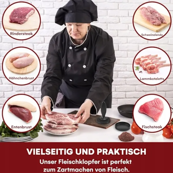 • För nötkött, kalvkött, fågel och lamm – förbereder effektivt kött för tillagning och stekning.