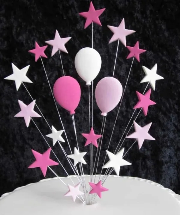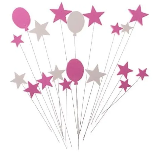 Dekorera tårtor eller andra bakverk med snygga cake toppers i stjärnor och ballonger i rosa och vitt. Perfekt till fördelsedag, dop, babyshower ect.