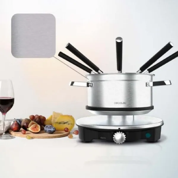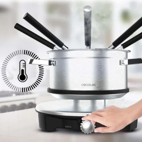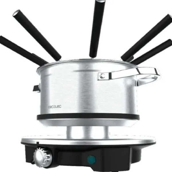 Electric cheese, chocolate and oil fondue, 1500 W and 8 forks. FondueSplashproof lid8 forksInstruction manual