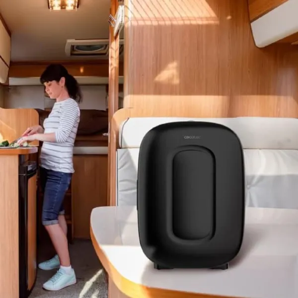 MiniCooling Bora Black 4 L mini fridge, 12 V-220 V operation, car and caravan compatible, cooling and heating function, temperature range 7-50 °C, easy transport. Compact design with 4 L capacity. 12-220 V operation Compatible with cars and caravans. Cooling function: cools down to a temperature of 7 ºC. Heating function: it has a thermostat with a maximum temperature of up to 50 ºC. Temperature range from 7 to 50 ºC Easy and comfortable to carry thanks to its design with handle. Quiet: silent level of the mini fridge. Power cable, refrigerator, instruction manual