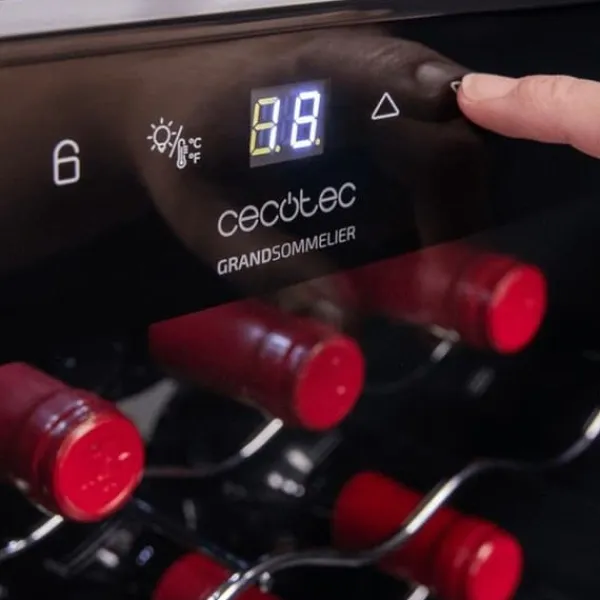 Den touchkontrollerade panelen och den digitala skärmen underlättar justeringen av temperaturen, tändning eller släckning av ljuset, och valet mellan mätenheterna Fahrenheit eller Celsius. LED-belysningen inuti gör det enkelt att se in i vinkylens innehåll.