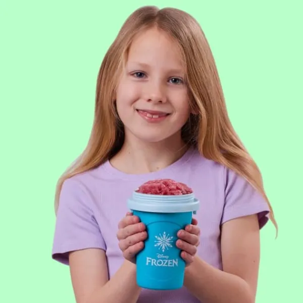 Gör härligt svalkande Slushies med Chillfactor Slushy Maker. Motiv från Disney Frost. Lägg muggen i frysen och vänta till kylelementet är helt fryst (5-6 timmar). Fyll den med kall dricka, vänta en liten stund och kläm på muggen. Snart är din slush färdig och redo att avnjutas med den medföljande skeden/sugröret. Enkelt och gott, perfekt för varma sommardagar.