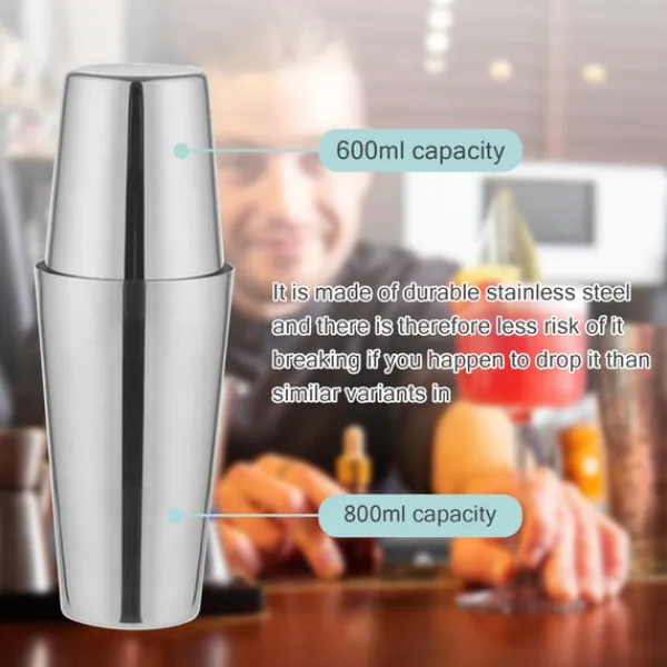 Cocktail shaker: För riktigt bra drinkar behövs självklart en riktigt bra shaker. Denna är dubbel och ena delen rymmer hela 800 ml och den andra delen 600 ml. Den är i tåligt rostfritt stål och det är alltså mindre risk att den går sönder om du skulle råka tappa den än liknande varianter i till exempel glas.