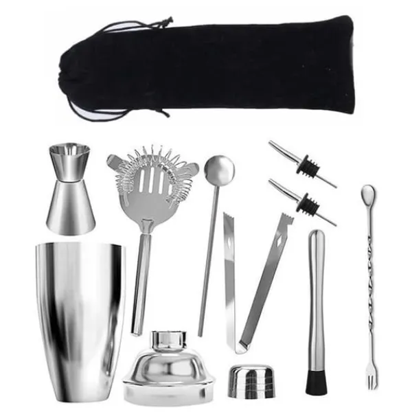 Innehåller: 550ml shaker, mätglas 1cl/4cl, sil (Hawthorne strainer), istång, drinksked, sked med rör för avsmakning samt 2st droppkorkar