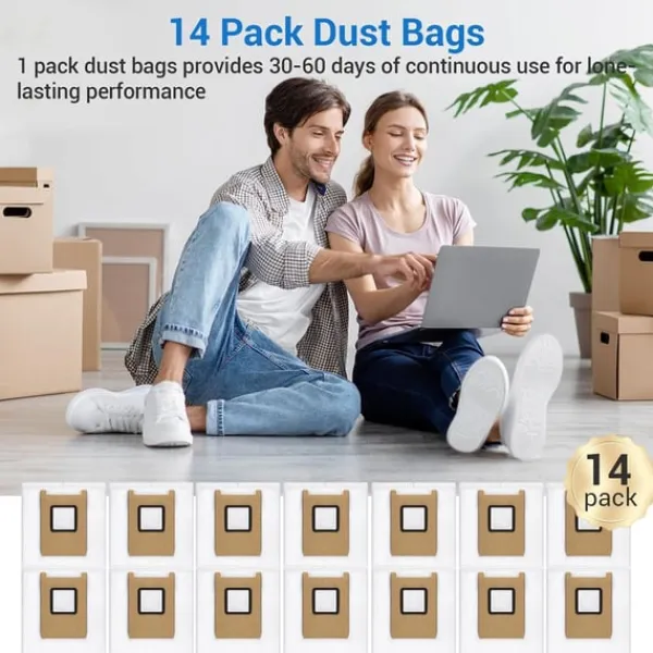 Lätt att byta: Att byta dammpåsar i din Eufy RoboVac E28 Omni och E25 Omni är en enkel och okomplicerad process. Påsarna är designade för enkel installation och borttagning, vilket minimerar stilleståndstiden och säkerställer att din robotdammsugare alltid är redo att användas. Ta helt enkelt bort den fulla påsen och ersätt den med en ny från detta 14-delars set. Den användarvänliga designen gör underhållet snabbt och bekvämt, så att du kan fokusera på andra uppgifter medan din robotdammsugare håller dina golv fläckfria.
