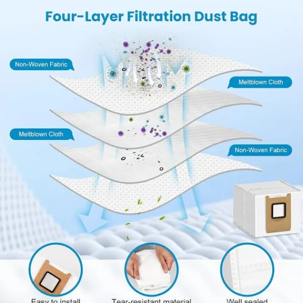 Bekvämt ersättningspaket: Denna 17-delars sats erbjuder ett bekvämt och kostnadseffektivt sätt att hålla din Eufy RoboVac igång smidigt. Med flera reservdelar inkluderade kan du enkelt byta ut slitna eller skadade borstar och dammpåsar efter behov, utan att behöva köpa enskilda komponenter. Detta säkerställer att din RoboVac alltid är redo att ta itu med dina rengöringsbehov och ger konsekvent och pålitlig prestanda. Satsen är utformad för enkel installation, så att du snabbt kan byta ut delar utan specialverktyg eller expertis. Genom att ha ett lager av reservtillbehör till hands kan du undvika avbrott i din rengöringsrutin och upprätthålla ett konsekvent rent hem. Denna sats är en praktisk och viktig investering för alla Eufy RoboVac-ägare.