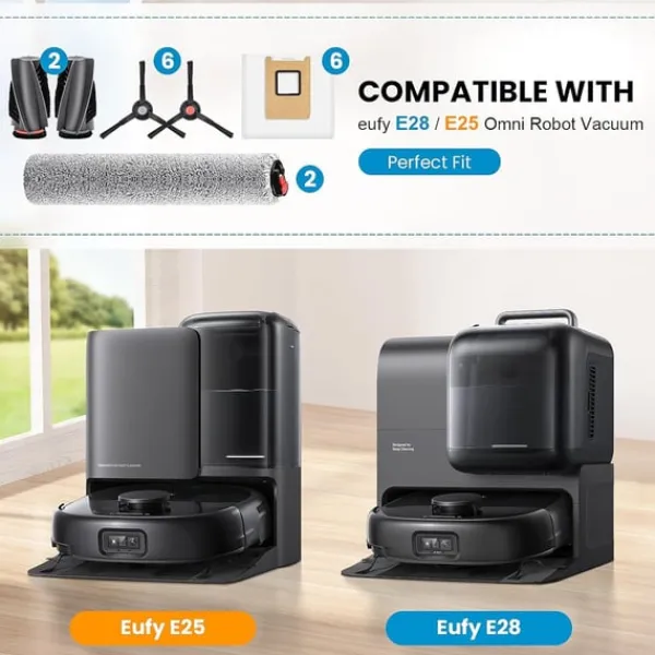 Komplett rengöringslösning: Denna 17-delars tillbehörssats erbjuder en komplett rengöringslösning för dina Eufy RoboVac E28 Omni och E25 Omni robotdammsugare. Den inkluderar flera huvudborstar, sidoborstar och dammpåsar för att säkerställa att din dammsugare fungerar optimalt och effektivt tar bort damm, smuts och skräp från dina golv. Regelbundet byte av dessa delar hjälper till att bibehålla optimal sugkraft och rengöringseffektivitet, vilket förlänger livslängden på din RoboVac. Denna sats är viktig för att hålla ditt hem rent och allergenfritt, och erbjuder ett bekvämt och kostnadseffektivt sätt att underhålla din rengöringsrutin. De högkvalitativa materialen som används i dessa tillbehör säkerställer att de är effektiva och säkra för användning på olika golvtyper.
