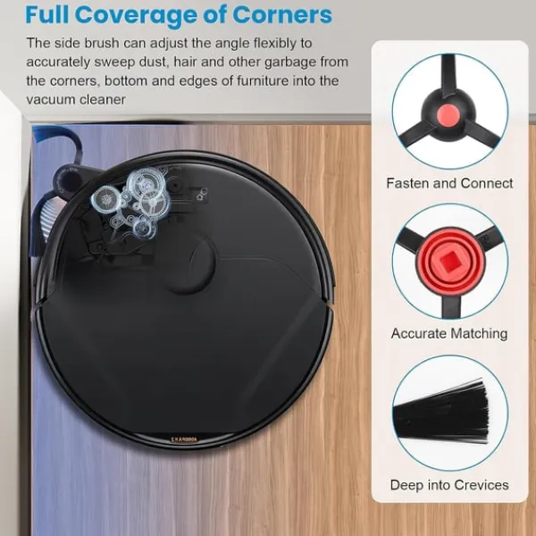Förbättrad rengöringsprestanda: Ersättningshuvudborstarna och sidoborstarna i denna sats är utformade för att förbättra rengöringsprestandan hos din Eufy RoboVac. Huvudborstarna rör effektivt om och lyfter smuts från mattor och hårda golv, medan sidoborstarna når kanter och hörn för att säkerställa en noggrann rengöring. Genom att byta ut slitna borstar med dessa nya tillbehör kan du återställa din RoboVacs förmåga att plocka upp fina partiklar och större skräp, vilket lämnar dina golv fläckfria. Denna förbättrade rengöringsprestanda är särskilt fördelaktig för hem med husdjur eller allergiker, eftersom den hjälper till att ta bort djurhår, dammkvalster och andra allergener från ditt vardagsrum. Borstarna är enkla att installera och ger en märkbar förbättring av rengöringseffektiviteten.