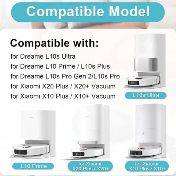 Perfekt kompatibilitet: Denna omfattande utbytessats är utformad för att perfekt passa Xiaomi X20-Plus, L10s Ultra, L10-Prime, L10-Plus, X10-Plus, L10-Pro Gen 2 och X20+ robotdammsugare, vilket säkerställer optimal rengöringsprestanda.