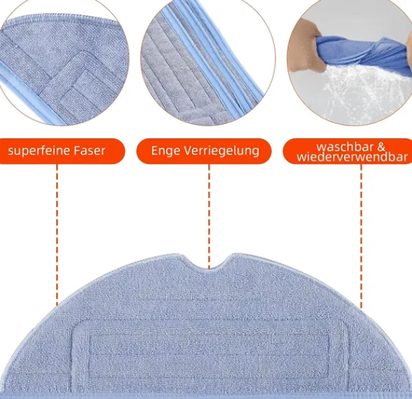 Skinande rena golv: 6 st tvättbara och återanvändbara moppdynor ingår också. De är enkla att fästa på robotdammsugaren och ser till att du får en rent och polerat golv.