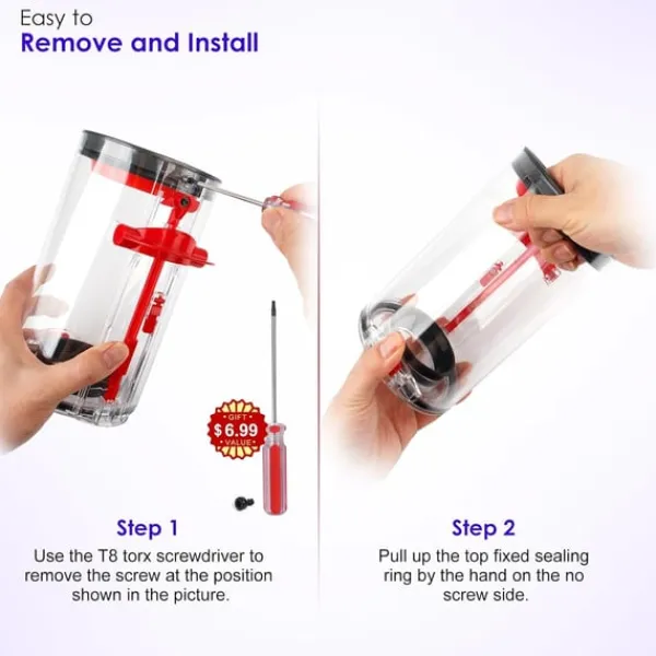 Enkel installation: Installationen av denna tätningsring är snabb och enkel, tack vare den medföljande T8-skruvmejseln. Du behöver inga specialverktyg eller expertkunskaper för att byta ut din gamla tätningsring. Följ bara de enkla instruktionerna och du kommer att ha din Dyson dammsugare igång igen på nolltid. Denna enkla installation gör det till en problemfri uppgradering som alla kan göra, oavsett teknisk erfarenhet. Den medföljande skruvmejseln säkerställer att du har allt du behöver för att slutföra installationen snabbt och effektivt.