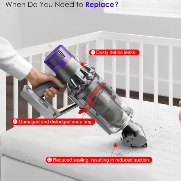 Förbättrad tätning: Den uppgraderade tätningsringen säkerställer en tätare passform för din Dyson dammbehållare, vilket minskar risken för läckage och förbättrar sugkraften. Denna förbättrade tätning bidrar till en mer effektiv rengöring och ett renare hem. Den är kompatibel med Dyson V11, V15, Gen5 och SV-serien, vilket gör den till en mångsidig uppgradering för din dammsugare. Denna ring är tillverkad av högkvalitativa material och är utformad för att tåla regelbunden användning och ge långvarig prestanda.