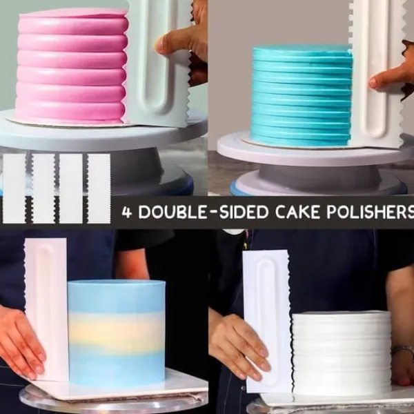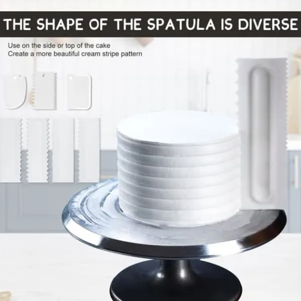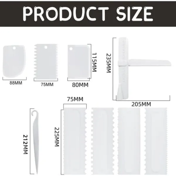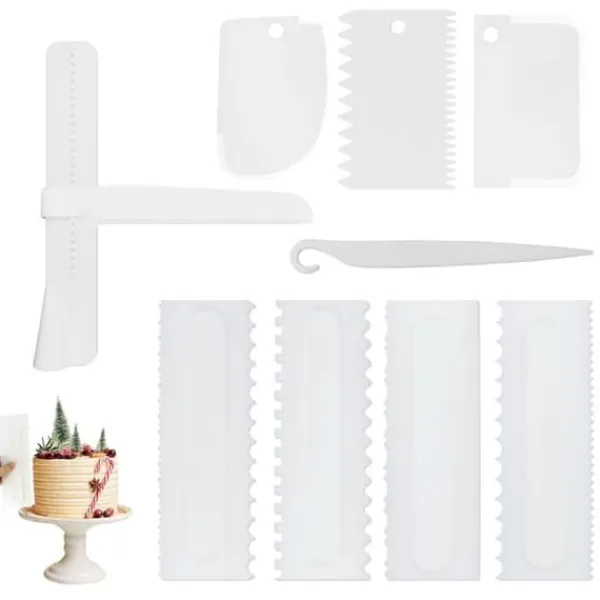 Skapa fantastiska tårtor med detta kompletta set av bakverktyg från mimzemamz. Bestående av 7 olika tårtslickor, 1 justerbar gräddspatel och 1 tårtslagningskniv, gör detta set det enkelt att släta ut grädden på dina tårtor och skapa unika dekorativa mönster. Den justerbara tårtslickan kan anpassas för att passa tårtor med upp till 20 cm i diameter. Baka perfekta tårtor med en slät och jämn yta, oavsett om det är en tårta med fondant, smörkräm eller mousse. Detta set är idealiskt för både hemmabagare och professionella som vill skapa fantastiska desserter.