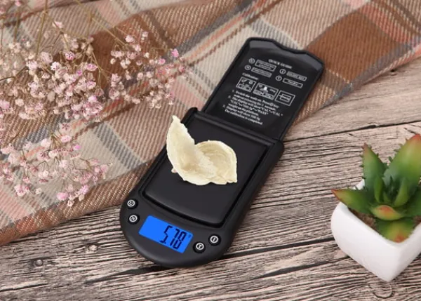Kompakt och bärbar: Med sin kompakta storlek (13 cm x 7,5 cm x 2,4 cm) och lätta design är denna fickvåg lätt att bära och förvara, vilket gör den idealisk för både hemmabruk och professionellt bruk.