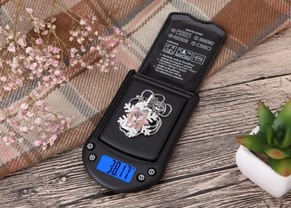 Hög precision: Denna digitala smyckesvåg har en högprecisionssensor som säkerställer exakta mätningar för dina värdefulla föremål.