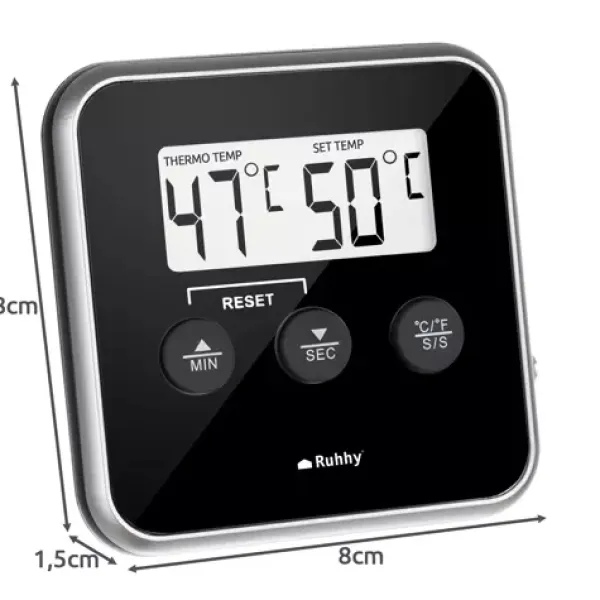 Denna termometer är designad för att hantera ett brett spektrum av matlagningsscenarion. Oavsett om det gäller att säkerställa den perfekta kötttemperaturen, kontrollera hetta i oljor eller övervaka livsmedel i din rökare, klarar detta redskap av det mesta. Temperaturomfånget från 0 till 250 grader Celsius gör den idealisk för användning i både ugn och grill. Dessutom kommer den med en inbyggd timer och en högljudd larmfunktion som meddelar dig när tiden du ställt in har gått eller när din mat nått önskad temperatur.