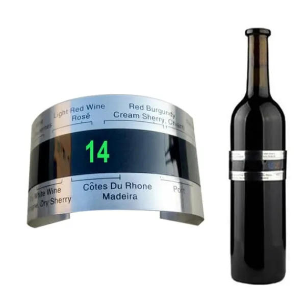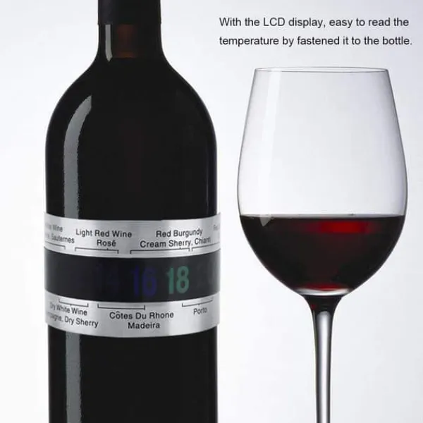 Denna smarta digitala vintermometer fästs enkelt runt flaskan och visar direkt dess exakta temperatur. Perfekt för att säkerställa att ditt vin serveras vid rätt temperatur för bästa smakupplevelse. Passar de flesta flaskstorlekar och är enkel att använda!
