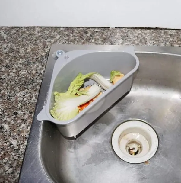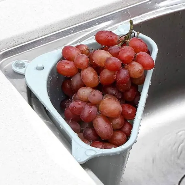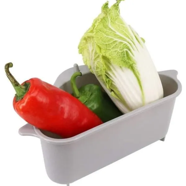 En praktisk hylla med dräneringshål som du fäster med hjälp av en sugkopp i hörnet av diskhon. Hyllan tar inte upp mycket plats, och gör att du enkelt att skölja av frukt och grönsaker utan att behöva ta fram ett durkslag. Den är även utmärkt att använda som förvaringshylla till disksvampar och liknande, då överflödigt vatten rinner ned i vasken.