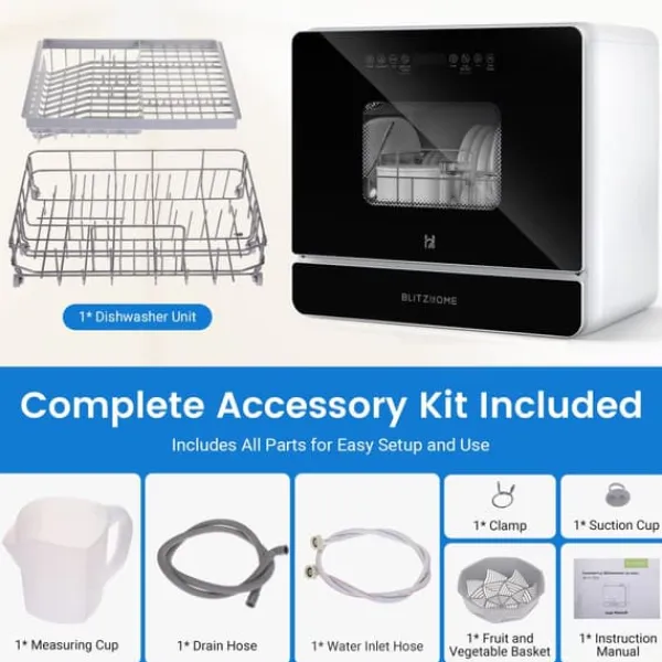 Förbättrade bekvämlighetsfunktioner: Dra nytta av funktionen för fördröjd start 24 timmar, som gör att du kan schemalägga diskar enligt din dagliga rutin. Den tvådelade korgen rymmer mer disk, vilket minskar disktiden. Viktiga tillbehör som fruktkorg, måttkopp, avloppsslang, inloppsslang, klämma och sugkopp ingår också.
