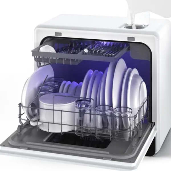 Två vattenförsörjningslägen: Välj mellan tankläge med integrerad 5,2-liters vattentank och kranläge med direkt anslutning till en kran. Oavsett om du är i köket eller på språng gör den flexibla vattenförsörjningen denna bärbara minidiskmaskin praktisk i alla miljöer.