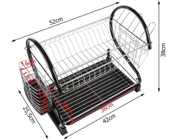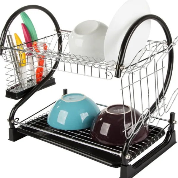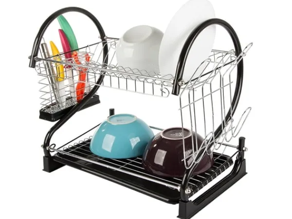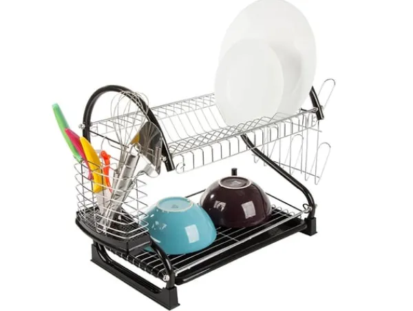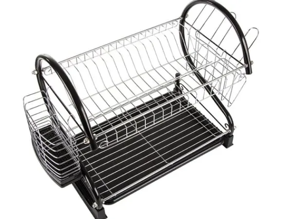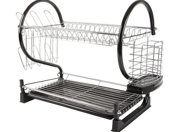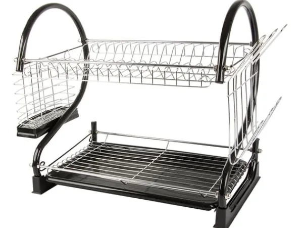 Den två-nivå torkstället är en viktig del av utrustningen i varje kök. Det är mycketpraktiskt, medtvå nivåersom rymmer stora mängder tallrikar, skålar och glas. Dessutom har dentvå hängande hållare, en för bestick och en för glas.