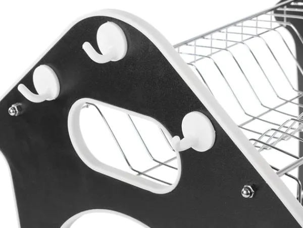 Det är utrustat med enupphängningsbar bestickorganisatör som kan fästas var som helst på diskställets kant och3 krokar där du kan hänga dina köksredskap.