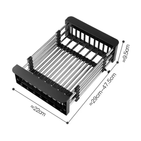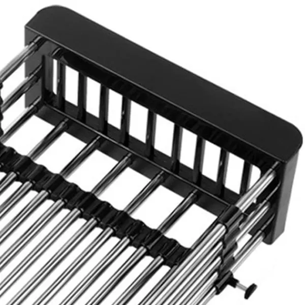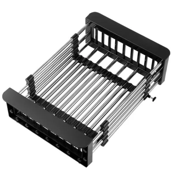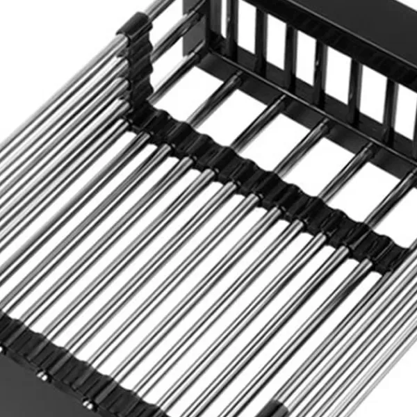 Välkommen till vår butik! Denna övervasksil i rostfritt stål är designad för att ge stark bärförmåga och lång livslängd. Den är gjord av högkvalitativt rostfritt stålmaterial. Den infällbara designen gör den lämplig för diskbänkar av olika bredder.
