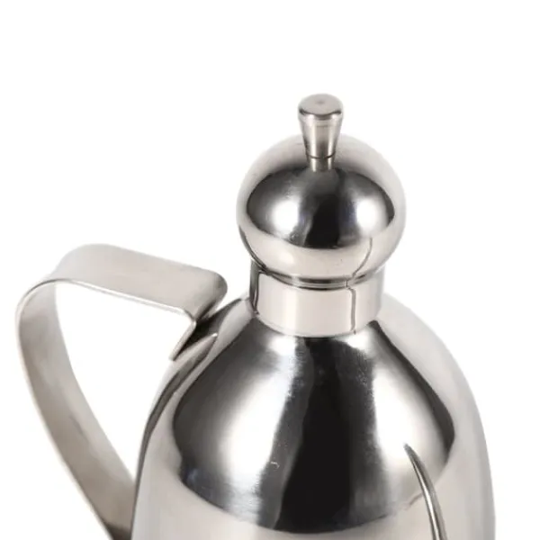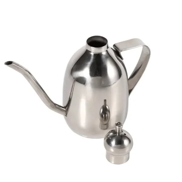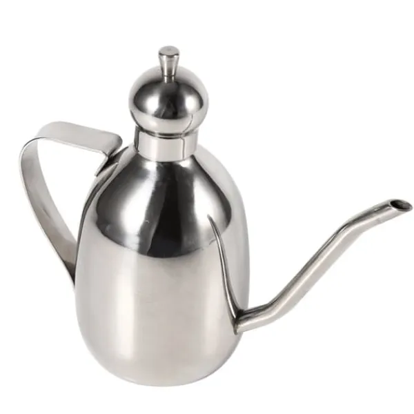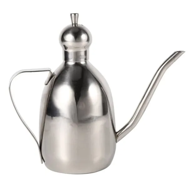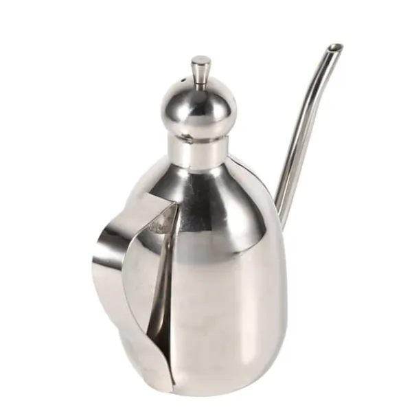 Oljekärlet har ett mindre tryckavlastningshål på locket, vilket hjälper till att balansera trycket och säkerställer ett jämnt flöde av olja. Dess ergonomiskt böjda handtag ger ett bekvämt grepp, vilket gör den lätt att hålla och använda.
