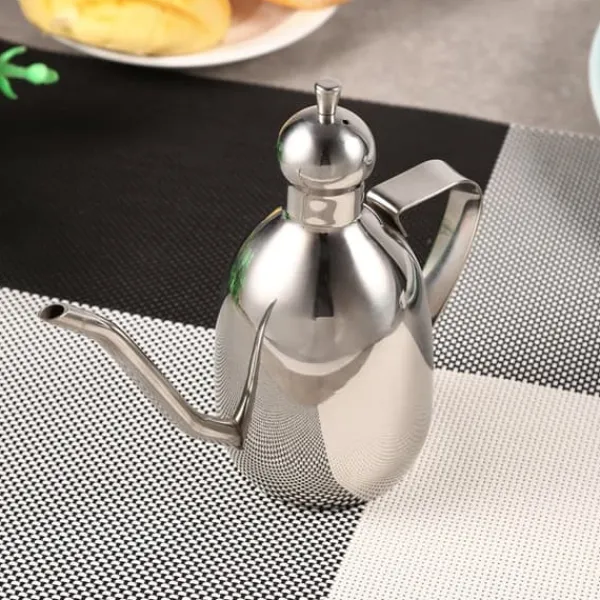 Välkommen till vår butik! Vår oljekruka är gjord av matklassat rostfritt stålmaterial med utsökt utförande, vilket säkerställer att den är säker, miljövänlig och hållbar att använda. Den har en oljekapacitet på 0,35 liter, perfekt för förvaring av olja, oliv och vinäger i ditt kök. Den droppfria pipens design förhindrar att olja droppar ner på sidan av flaskan, vilket eliminerar eventuella smuts på disken.