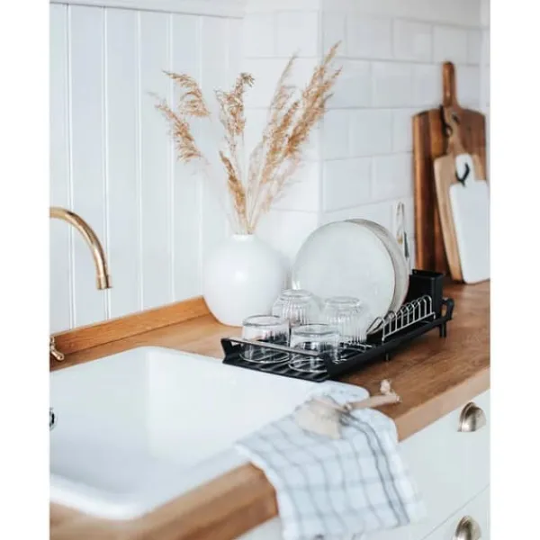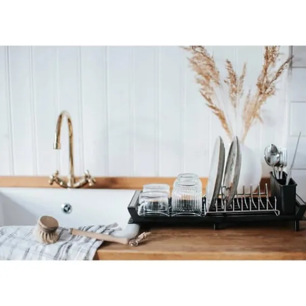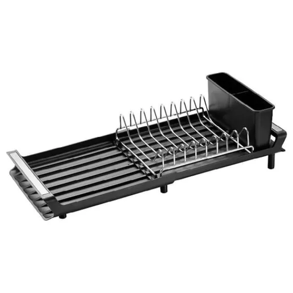 Smidigt, litet och praktiskt diskställ i krom och plast, tar liten plats och brickan fungerar som avrinning. Ställ för tallrikar och bestickkorg. Tar liten plats i det lilla köket. Passar även bra i husvagnen, båten eller husbilen. Storlek ihopfällt: 27x20x14 cm
