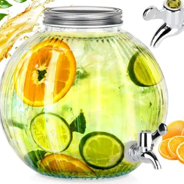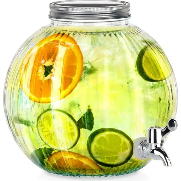 Denna glasdispenser med kran är perfekt för att servera vatten, lemonad, juice, iste, smaksatt vatten och till och med punch. Kranen gör det enkelt att servera dina favoritdrycker på ett stilfullt sätt. Burken kan användas både i trädgården och vid familjesammankomster. Ej lämplig för varma drycker. Tillverkad i enlighet med europeiska standarder.