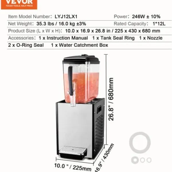 Denna kommersiella dryckesdispenser är utformad för effektiv och hygienisk servering av olika kalla drycker, vilket gör den idealisk för restauranger, barer, fester och andra sammankomster. Dess stora kapacitet och användarvänliga design säkerställer smidig drift, medan hållbara livsmedelsklassade material garanterar säkerhet och enkel rengöring. Dispensern har snabb kylning och grundlig omrörning, vilket håller dryckerna vid optimal temperatur för njutning.