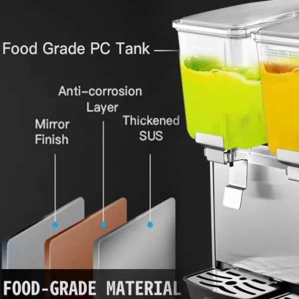 BRED ANVÄNDNING – Denna kommersiella, multifunktionella juice-dispenser är perfekt för framstående cateringföretag, såsom restaurangkedjor, livsmedelsbutiker, hotell, gym osv., för att rymma olika drycker som sojamjölk, milkshake, juice, cocktails, yoghurt, kaffe osv.