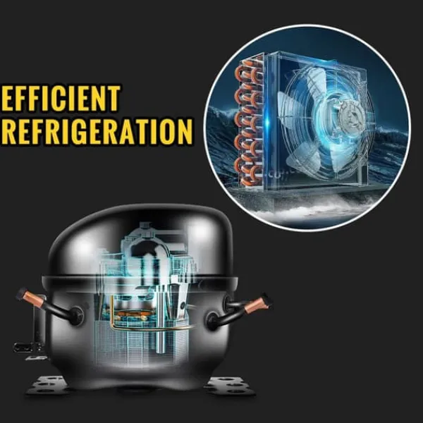 EFFEKTIV KYLETECHNIK – Helkopparsrör för kylkondensator och högpresterande kompressor säkerställer snabb kylning. Den högkvalitativa temperaturregulatorn håller en behaglig smak mellan 5-12°C (41-53,6°F).